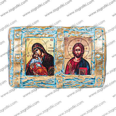 Εικόνα αγίων με 2 άγιους ιδανική για μπομπονιέρα βάπτισης ή μπομπονιέρα γάμου σε διάφορα χρώματα, Παναγία Γλυκοφιλούσα και Ιησούς Χριστός.