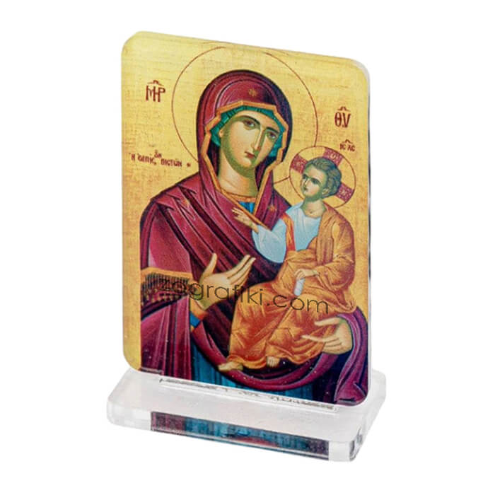 Εικόνα αγίου επιτραπέζια με plexiglass βάση ιδανική και για μπομπονιέρα σε βάπτιση και γάμο με την Παναγία με τον Χριστό.