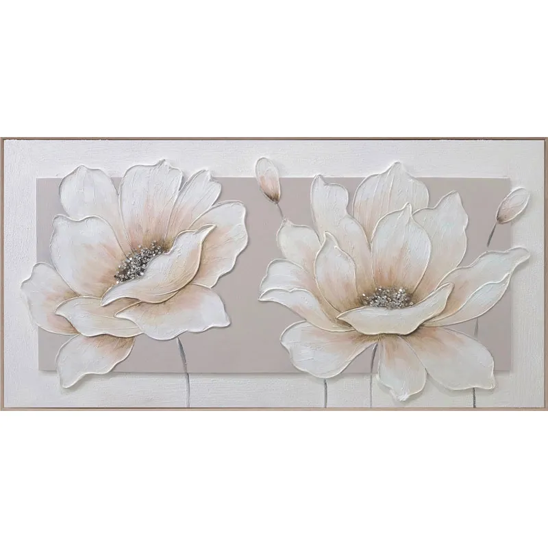 ΠΙΝΑΚΑΣ ΚΑΜΒΑΣ 2 ΑΝΘΗ & ΜΠΟΥΜΠΟΥΚΙΑ ΛΕΥΚΟ/ΚΑΦΕ ΣΕ ΚΟΡΝΙΖΑ 3D ΣΤΟΙΧΕΙΑ 120x60cm 6/KIB