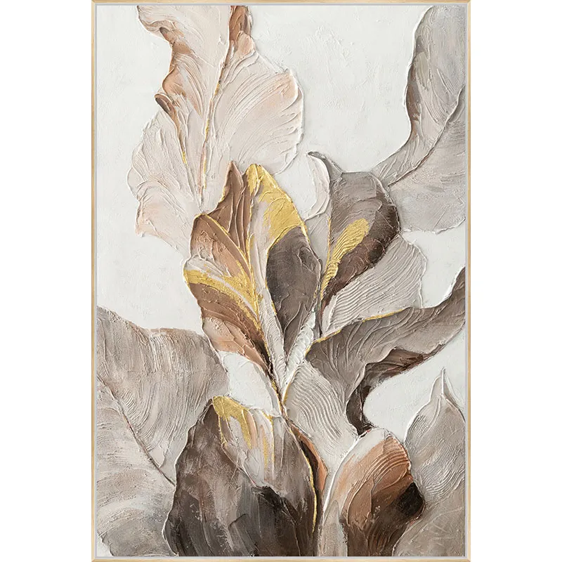 ΠΙΝΑΚΑΣ ΕΛΑΙΟΓΡΑΦΙΑ ΣΕ ΚΑΜΒΑ ΑΝΑΓΛΥΦΟ ΕΦΕ - ΘΕΜΑ: ΦΥΛΛΑ ΕΚΡΟΥ/ΚΑΦΕ/ΧΡΥΣΟ - ΥΛΙΚΑ: ΞΥΛΟ, ΚΑΜΒΑΣ, ΠΛΑΙΣΙΟ PS - ΚΙΒ: 6 ΔΙΑΣΤΑΣΕΙΣ / DIMΕNSIONS: 102.5x152.5x4.5cm OIL PAINTING ON CANVAS EMBOSSED EFFECT - THEME: LEAVES CREAM/BROWN/GOLD - MATERIALS: WOOD, CANVAS, PS FRAME - BOX: 6 ΜΕ ΚΟΡΝΙΖΑ / WITH FRAME