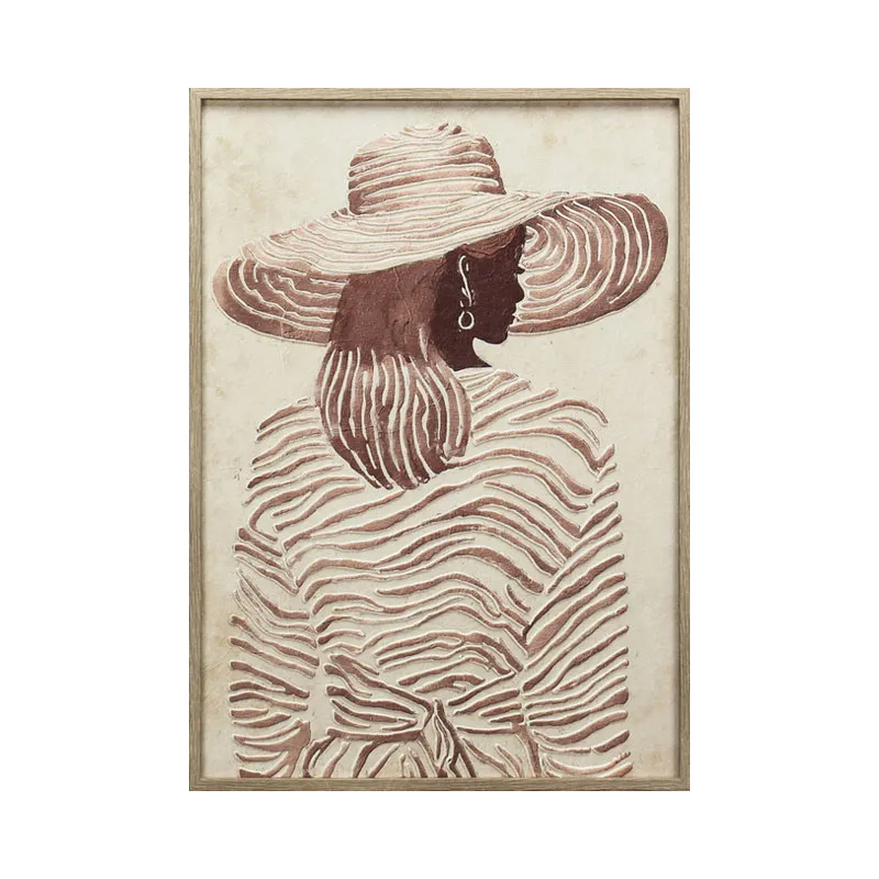 ΕΚΤΥΠΩΣΗ ΣΕ ΚΑΜΒΑ ΑΝΑΓΛΥΦΟ ΕΦΕ - ΘΕΜΑ: ΓΥΝΑΙΚΑ ΜΕ ΚΑΠΕΛΟ ΕΚΡΟΥ/ΚΑΦΕ - ΥΛΙΚΑ: ΚΑΜΒΑΣ, ΦΕΛΙΖΟΛ, MDF, ΠΛΑΙΣΙΟ PS - ΚΙΒ: 7 ΔΙΑΣΤΑΣΕΙΣ / DIMΕNSIONS: 50x70x3cm CANVAS PRINTING EMBOSSED EFFECT - THEME: WOMAN WITH HAT CREAM/BROWN - MATERIALS: CANVAS, STYROFOAM, MDF, PS FRAME - BOX: 7 ΜΕ ΚΟΡΝΙΖΑ / WITH FRAME