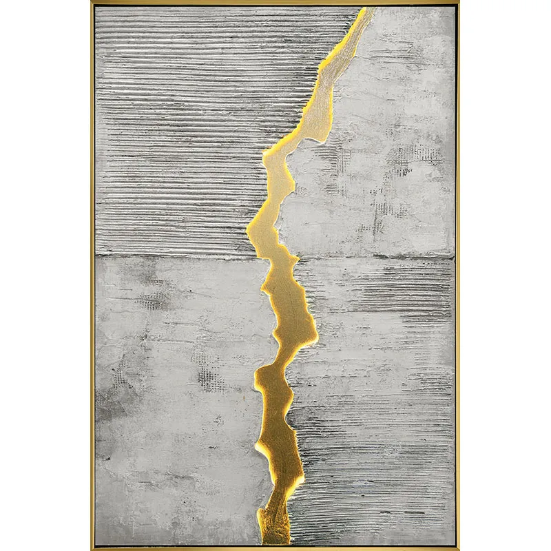 ΠΙΝΑΚΑΣ ΣΕ ΚΑΜΒΑ ΦΩΤΙΖΟΜΕΝΟΣ ΜΕ LED ΓΚΡΙ/ΧΡΥΣΟ 3D BIOMHXANIKO ΣΧΕΔΙΟ ΣΕ ΚΟΡΝΙΖΑ 82.5x122.5x3.5cm 4/ΚΙΒ