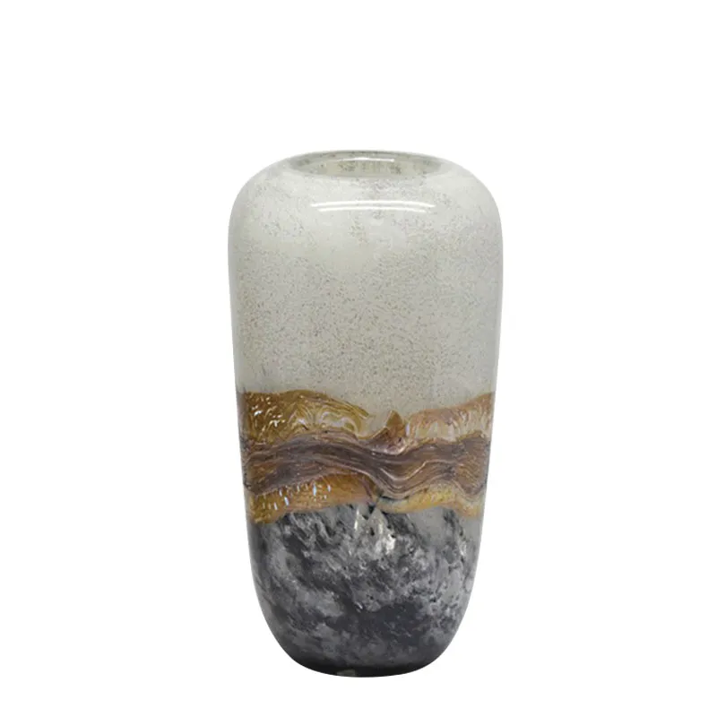 ΒΑΖΟ ΑΠΟ ΦΥΣΗΤΟ ΓΥΑΛΙ ΩΟΕΙΔΕΣ ΜΠΕΖ/ΜΕΛΙ & ΓΚΡΙ ΜΑΡΜΑΡΟ Φ15x28cm 6/ΚΙΒ
