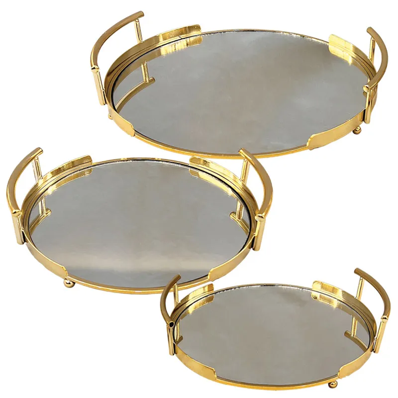 ΔΙΑΚΟΣΜΗΤΙΚΟΙ ΔΙΣΚΟΙ ΣΕΤ/3 ΜΕ ΧΕΡΟΥΛΙΑ - ΧΡΩΜΑ: ΧΡΥΣΟ - ΥΛΙΚΑ: ΜΕΤΑΛΛΟ, ΚΑΘΡΕΦΤΗΣ - ΣΧΕΔΙΟ: ΣΤΡΟΓΓΥΛΟ - ΚΙΒ.: 4 ΔΙΑΣΤΑΣΕΙΣ / DIMΕNSIONS: S:25, M:30, L:35cm SERVING TRAYS SET/3 WITH HANDLES - COLOR: GOLD - MATERIALS: IRON, MIRROR - DESIGN: ROUND - BOX: 4