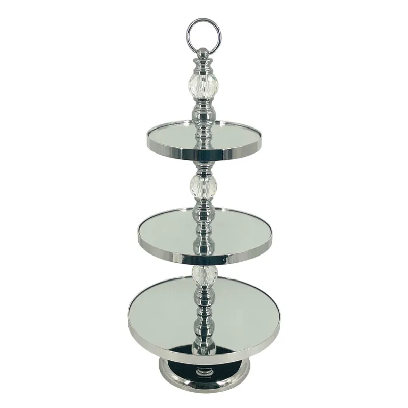 ΔΙΑΚΟΣΜΗΤΙΚΗ ΕΤΑΖΕΡΑ 3 ΔΙΣΚΩΝ - ΧΡΩΜΑ: ΑΣΗΜΙ/ΛΕΥΚΟ - ΥΛΙΚΑ: ΜΕΤΑΛΛΟ, ΓΥΑΛΙ, ΚΑΘΡΕΦΤΗΣ - ΣΧΕΔΙΟ: ΣΤΡΟΓΓΥΛΟ - ΚΙΒ.: 6 ΔΙΑΣΤΑΣΕΙΣ / DIMΕNSIONS: Φ30x68cm SERVING TRAYS 3 FLOORS - COLOR: SILVER/WHITE - MATERIALS: IRON, GLASS, MIRROR - DESIGN: ROUND - BOX: 6