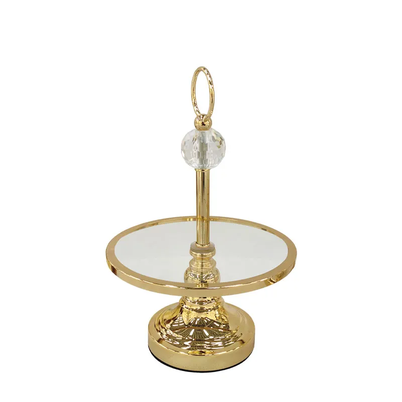 ΕΤΑΖΕΡΑ ΜΕΤΑΛΛΙΚΗ ΧΡΥΣΟ/ΛΕΥΚΟ ΜΟΝΗ ΣΤΡΟΓΓΥΛΗ ΙΣΙΑ ΜΕΓΑΛΗ ΜΕ ΚΡΥΣΤΑΛΛΟ & ΓΥΑΛΙ Φ23x35cm 12/ΚΙΒ