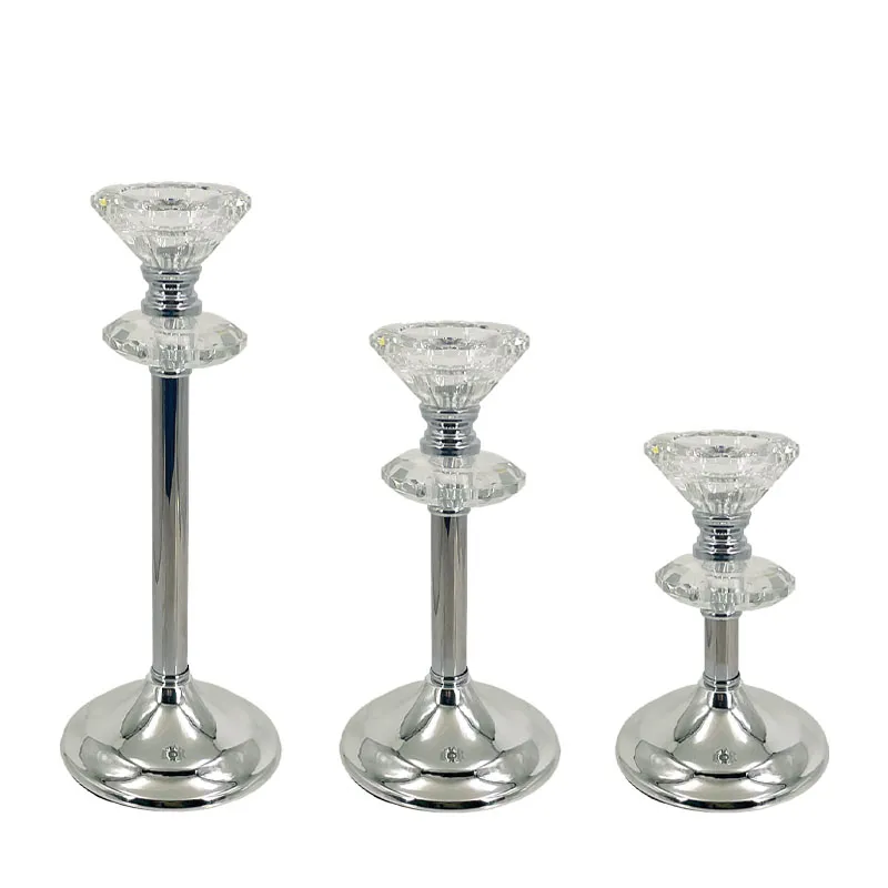 ΚΗΡΟΠΗΓΕΙΑ ΜΕΤΑΛΛΙΚA ΑΣΗΜΙ/ΛΕΥΚΟ ΣΕΤ/3 ΚΛΑΣΙΚΟ ΡΑΒΔΟΣ ΜΕ ΚΡΥΣΤΑΛΛΑ S:Φ10x17, Μ:Φ10x21, L:Φ10x27cm 12/ΚΙΒ