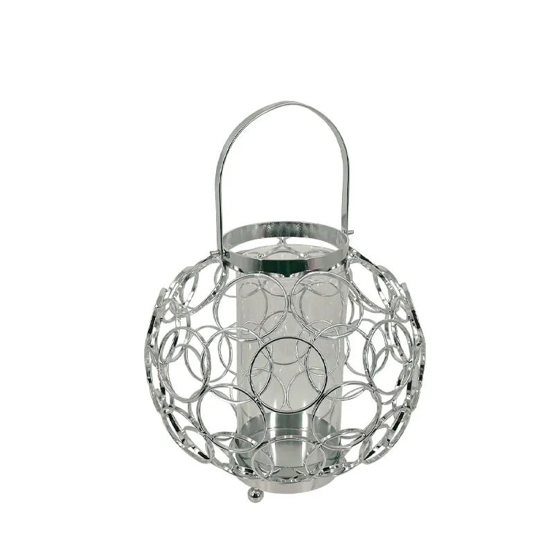 ΚΗΡΟΠΗΓΕΙΟ-ΦΑΝΑΡΙ ΜΕΤΑΛΛΙΚΟ ΑΣΗΜΙ/ΛΕΥΚΟ ΣΦΑΙΡΑ ΚΥΚΛΩΝ ΜΕΓΑΛΟ ΜΕ ΓΥΑΛΙ Φ23x23cm 6/ΚΙΒ