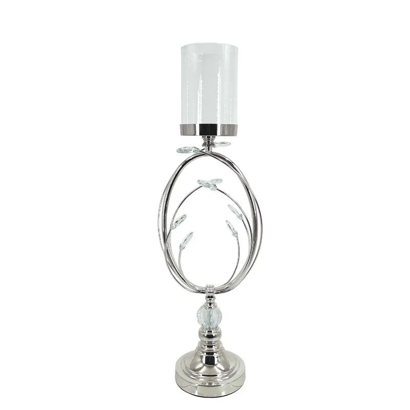 ΚΗΡΟΠΗΓΕΙO ΜΕΤΑΛΛΙΚO ΑΣΗΜΙ/ΛΕΥΚΟ ΜΕ ΓΥΑΛΙ ΚΡΥΣΤΑΛΛΑ ΜΠΟΥΜΠΟΥΚΙΑ ΜΕΓΑΛΟ Φ18x49.5cm 6/ΚΙΒ