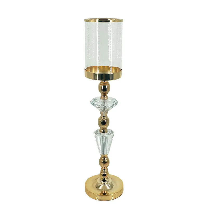 ΚΗΡΟΠΗΓΕΙO ΜΕΤΑΛΛΙΚO ΧΡΥΣΟ/ΛΕΥΚΟ ΜΟΝΟ ΚΛΑΣΙΚΟ ΜΕ ΚΡΥΣΤΑΛΛΑ & ΓΥΑΛΙ ΜΕΓΑΛΟ Φ12x50cm 12/ΚΙΒ