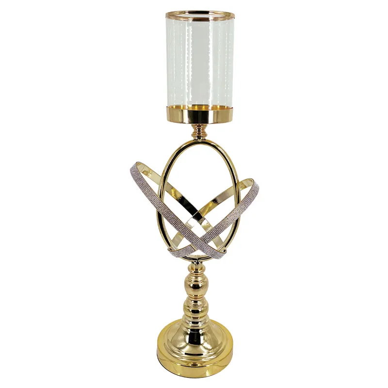 ΔΙΑΚΟΣΜΗΤΙΚΟ ΚΗΡΟΠΗΓΙΟ - ΧΡΩΜΑ: ΧΡΥΣΟ/ΛΕΥΚΟ - ΥΛΙΚΑ: ΜΕΤΑΛΛΟ, ΓΥΑΛΙ, ΣΤΡΑΣΣ - ΣΧΕΔΙΟ: ΧΙΑΣΤΙ ΔΑΚΤΥΛΙΟΙ - ΚΙΒ.: 12 ΔΙΑΣΤΑΣΕΙΣ / DIMΕNSIONS: Φ19x57cm DECORATIVE CANDLEHOLDER - COLOR: GOLD/WHITE - MATERIALS: IRON, GLASS, STRASS - DESIGN: CROSS RINGS - BOX: 12