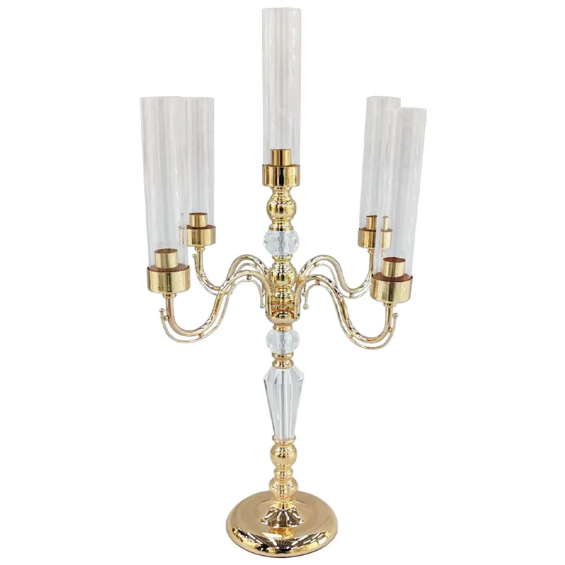 ΚΗΡΟΠΗΓΙΟ ΜΕΤΑΛΛΙΚΟ ΧΡΥΣΟ/ΛΕΥΚΟ ΚΛΑΣΙΚΟ ΣΩΛΗΝΑ ΜΕ ΚΡΥΣΤΑΛΛΑ 5 ΘΕΣΕΩΝ Φ47x84cm 4/ΚΙΒ