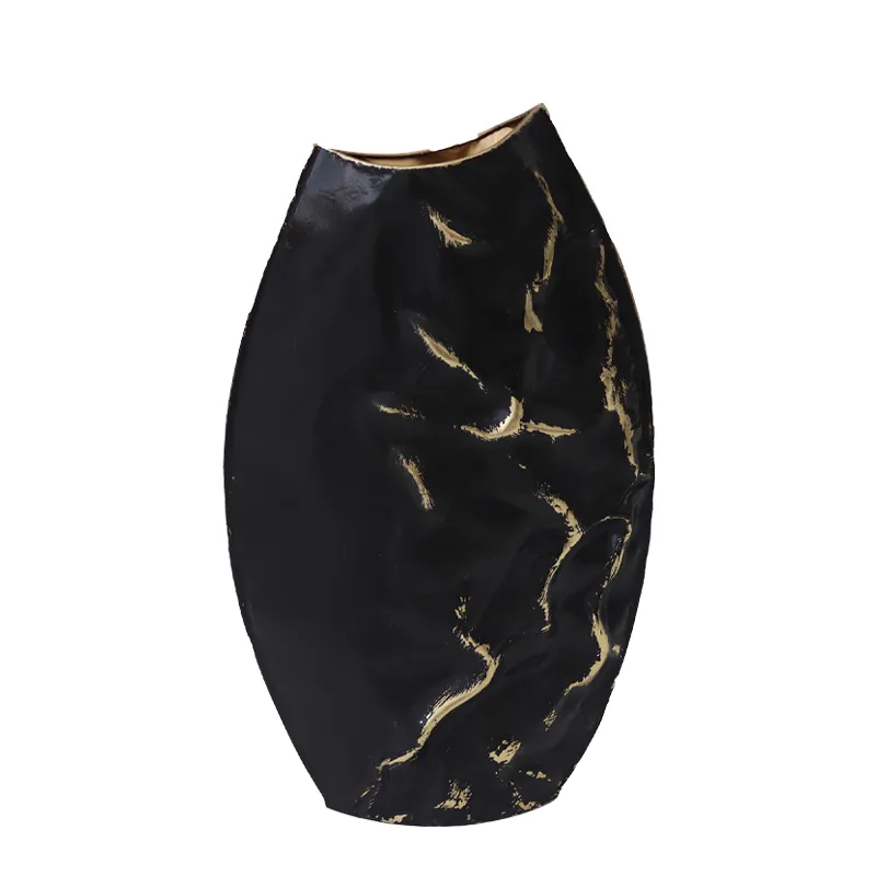 ΔΙΑΚΟΣΜΗΤΙΚO ΜΕΤΑΛΛΙΚΟ ΒΑΖΟ - ΧΡΩΜΑ: ΜΑΥΡΟ/ΧΡΥΣΟ - ΣΧΕΔΙΟ: ΤΣΑΛΑΚΩΤΟ - ΚΙΒ: 4 ΔΙΑΣΤΑΣΕΙΣ / DIMΕNSIONS: 27.3x10.2x45.7cm DECORATIVE METAL VASE - COLOR: BLACK/GOLD - DESIGN: WRINKLED - BOX: 4
