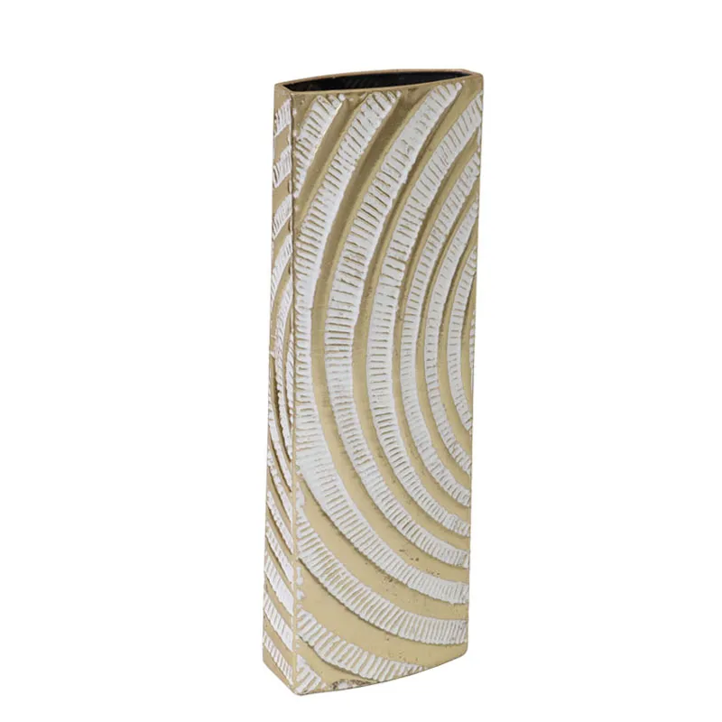 ΔΙΑΚΟΣΜΗΤΙΚO ΜΕΤΑΛΛΙΚΟ ΒΑΖΟ - ΧΡΩΜΑ: ΧΡΥΣΟ-ΛΕΥΚΟ - ΣΧΕΔΙΟ: ΑΚΤΙΝΩΤΟΙ ΚΥΚΛΟΙ - ΚΙΒ: 4 ΔΙΑΣΤΑΣΕΙΣ / DIMΕNSIONS: 16.5x8.9x49.5cm DECORATIVE METAL VASE - COLOR: GOLD-WHITE - DESIGN: RADIAL CIRCLES - BOX: 4