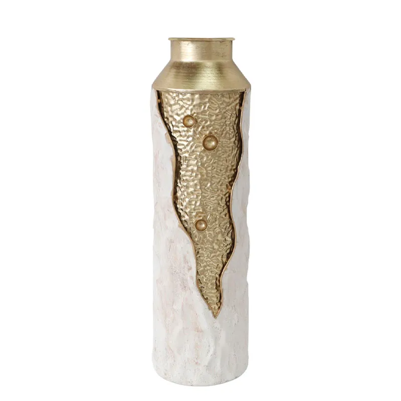 ΔΙΑΚΟΣΜΗΤΙΚO ΜΕΤΑΛΛΙΚΟ ΒΑΖΟ - ΧΡΩΜΑ: ΧΡΥΣΟ/ΛΕΥΚΟ - ΣΧΕΔΙΟ: ΜΠΟΥΚΑΛΙ ΣΚΙΣΜΕΝΟΣ ΦΛΟΙΟΣ - ΚΙΒ: 4 ΔΙΑΣΤΑΣΕΙΣ / DIMΕNSIONS: Φ16.4x56.5cm DECORATIVE METAL VASE - COLOR: GOLD/WHITE - DESIGN: BOTTLE TORN BARK - BOX: 4