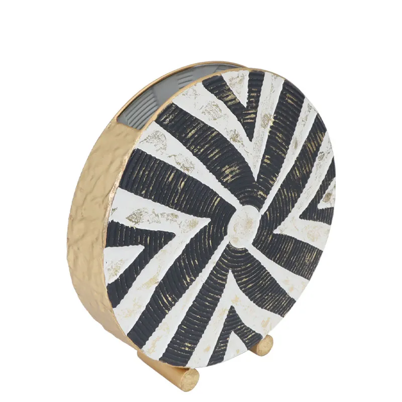 ΔΙΑΚΟΣΜΗΤΙΚO ΜΕΤΑΛΛΙΚΟ ΒΑΖΟ - ΧΡΩΜΑ: ΧΡΥΣΟ/ΜΑΥΡΟ/ΛΕΥΚΟ - ΣΧΕΔΙΟ: ΣΤΡΟΓΓΥΛΟ - ΑΦΡΙΚΑΝΙΚΟ ΜΟΤΙΒΟ - ΚΙΒ: 4 ΔΙΑΣΤΑΣΕΙΣ / DIMΕNSIONS: 30.5x31.8x8.9cm DECORATIVE METAL VASE - COLOR: GOLD/BLACK/WHITE - DESIGN: ROUND - AFRICAN PATTERN - BOX: 4