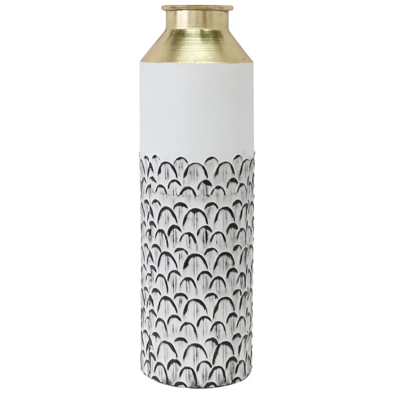 ΔΙΑΚΟΣΜΗΤΙΚO ΜΕΤΑΛΛΙΚΟ ΒΑΖΟ - ΧΡΩΜΑ: ΧΡΥΣΟ/ΜΑΥΡΟ/ΛΕΥΚΟ - ΣΧΕΔΙΟ: ΜΠΟΥΚΑΛΙ ΦΟΛΙΔΩΤΟ ΜΟΤΙΒΟ - ΚΙΒ: 4 ΔΙΑΣΤΑΣΕΙΣ / DIMΕNSIONS: Φ17.8x68.6cm DECORATIVE METAL VASE - COLOR: GOLD/BLACK/WHITE - DESIGN: BOTTLE SCALE PATTERN - BOX: 4