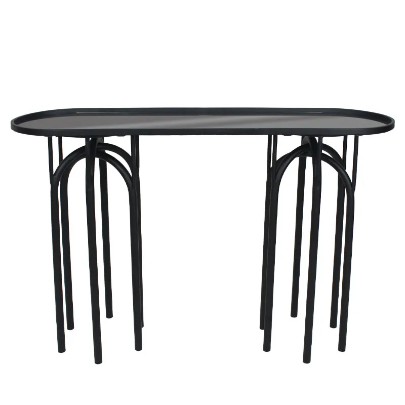 ΣΥΝΑΡΜΟΛΟΓΟΥΜΕΝΟ / ASSEMBLED ΔΙΑΚΟΣΜΗΤΙΚΗ ΚΟΝΣΟΛΑ ΣΤΡΟΓΓ. ΟΡΘΟΓΩΝΙΟ - INDUSTRIAL - ΧΡΩΜΑ: ΜΑΥΡΟ ΜΑΤ - ΥΛΙΚΑ: ΜΕΤΑΛΛΟ, ΓΥΑΛΙ - ΚΙΒΩΤΙΟ: 1 ΔΙΑΣΤΑΣΕΙΣ / DIMΕNSIONS: 120x35.5x81cm DECORATIVE ROUNDED RECTANGLE CONSOLE - INDUSTRIAL - COLOR: MATTE BLACK - MATERIALS: METAL, GLASS - BOX: 1