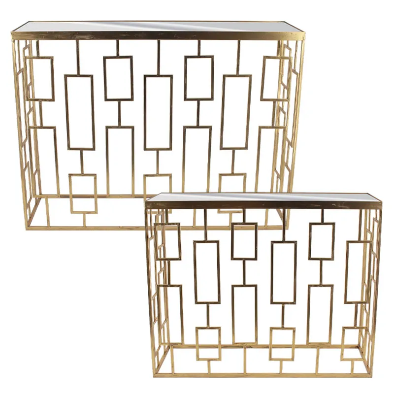ΔΙΑΚΟΣΜΗΤΙΚΟ ΤΡΑΠΕΖΑΚΙ ΣΕΤ/2 ΟΡΘΟΓΩΝΙΟ/ΠΛΑΙΣΙΑ - ΧΡΩΜΑ: ΧΡΥΣΟ - ΥΛΙΚΑ: ΜΕΤΑΛΛΟ, ΓΥΑΛΙ-ΚΑΘΡΕΠΤΗΣ - ΚΙΒΩΤΙΟ: 1 ΔΙΑΣΤΑΣΕΙΣ / DIMΕNSIONS: L:100x30x75, S:80.5x25x68.5cm DECORATIVE TABLE SET/2 RECTANGLE/FRAMES - COLOR: GOLD - MATERIALS: METAL, GLASS-MIRROR - BOX: 1 ΜΕ ΚΑΘΡΕΠΤΗ / WITH MIRROR