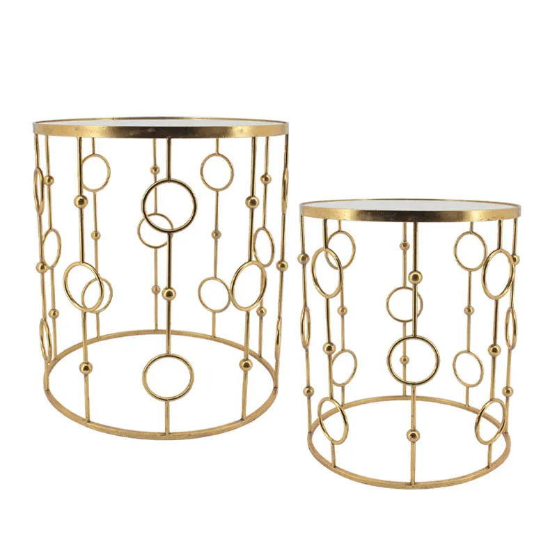 ΜΕΤΑΛΛΙΚΟ ΤΡΑΠΕΖΑΚΙ ΣΕΤ/2 ΧΡΥΣΟ ΣΤΡΟΓΓΥΛΟ/ΚΥΚΛΟΙ/ΚΑΘΡΕΠΤΗΣ L:Φ51x56.5, S:Φ44x51cm 1/KIB