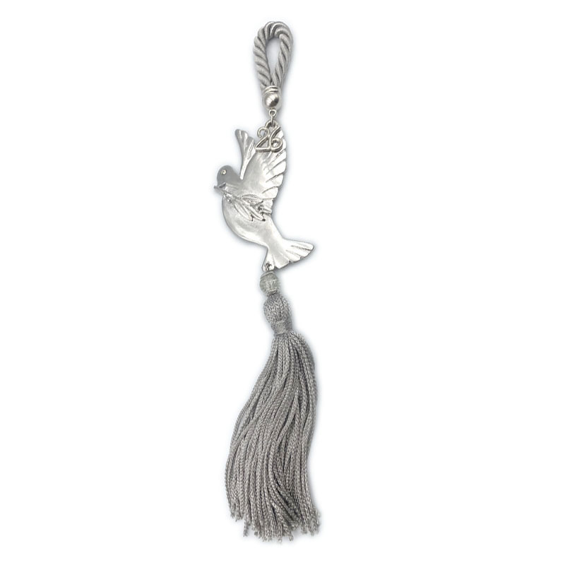 ΓΟΥΡΙ ΚΡΕΜΑΣΤΟ ΠΕΡΙΣΤΕΡΙ ΕΙΡΗΝΗΣ - ΧΡΩΜΑ: ΑΣΗΜΙ, ΓΚΡΙ - ΥΛΙΚΑ: ΜΕΤΑΛΛΟ, ΚΟΡΔΟΝΙ, ΦΟΥΝΤΑ ΔΙΑΣΤΑΣΕΙΣ / DIMΕNSIONS: Υ/Η 23cm DOVE OF PEACE HANGING GIFT - COLOR: SILVER, GREY - MATERIALS: IRON, CORD, TUFT