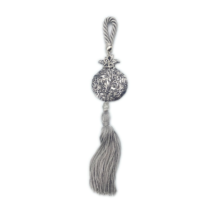ΓΟΥΡΙ ΚΡΕΜΑΣΤΟ ΡΟΔΙ ΑΝΑΓΛΥΦΟ - ΧΡΩΜΑ: ΑΣΗΜΙ, ΓΚΡΙ - ΥΛΙΚΑ: ΜΕΤΑΛΛΟ, ΚΟΡΔΟΝΙ, ΦΟΥΝΤΑ ΔΙΑΣΤΑΣΕΙΣ / DIMΕNSIONS: Υ/Η 23cm POMEGRANATE EMBODIMENT HANGING GIFT - COLOR: SILVER, GREY - MATERIALS: IRON, CORD, TUFT