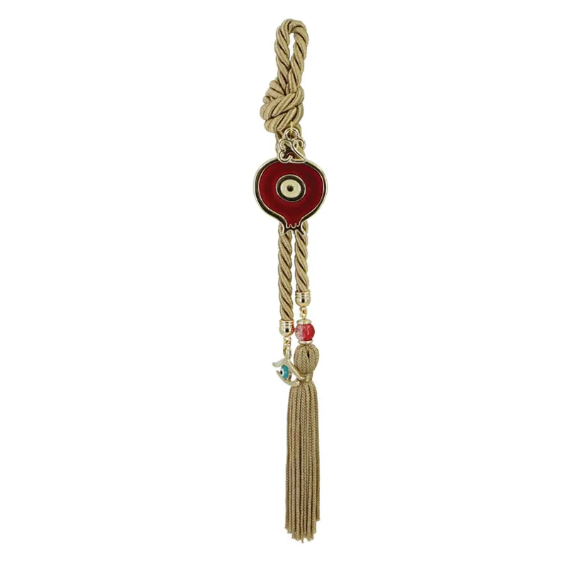ΔΙΑΚΟΣΜΗΤΙΚΟ ΚΡΕΜΑΣΤΟ ΓΟΥΡΙ - ΧΡΩΜΑ: MΠΕΖ-KOKKINO-ΧΡΥΣΟ - ΘΕΜΑ: ΡΟΔΙ-ΜΑΤΙ-ΕΤΟΣ - ΥΛΙΚΑ: ΜΕΤΑΛΛO, ΣΜΑΛΤΟ, ΧΑΝΤΡΑ, ΚΟΡΔΟΝΙ, ΦΟΥΝΤΑ - YΨΟΣ: 25cm DECORATION HANGING GIFT - COLOR: BEIGE-RED-GOLD - THEME: POMEGRANATE-EYE-YEAR - MATERIALS: METAL, ENAMEL, BEAD, CORD, TASSEL - HEIGHT: 25cm