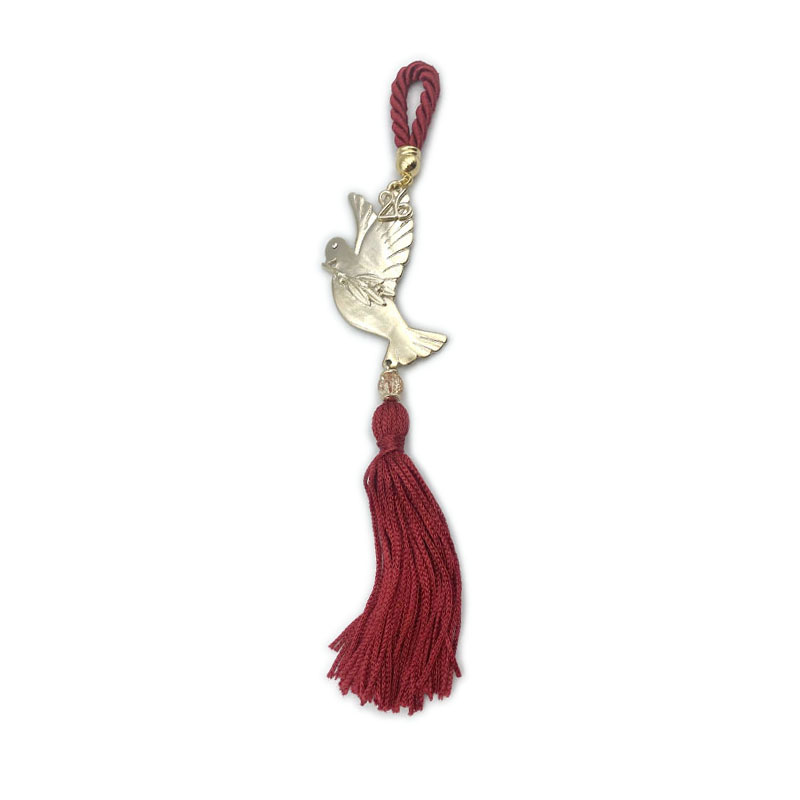 ΓΟΥΡΙ ΚΡΕΜΑΣΤΟ ΠΕΡΙΣΤΕΡΙ ΕΙΡΗΝΗΣ - ΧΡΩΜΑ: ΧΡΥΣΟ, ΜΠΟΡΝΤΩ - ΥΛΙΚΑ: ΜΕΤΑΛΛΟ, ΚΟΡΔΟΝΙ, ΦΟΥΝΤΑ ΔΙΑΣΤΑΣΕΙΣ / DIMΕNSIONS: Υ/Η 23cm DOVE OF PEACE HANGING GIFT - COLOR: GOLD, BORDEAUX - MATERIALS: IRON, CORD, TUFT