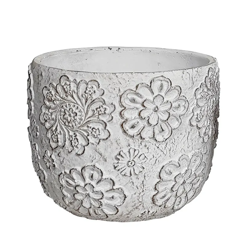 ΤΣΙΜΕΝΤΕΝΙΟ ΚΑΣΠΩ ΣΤΡΟΓΓΥΛΟ - ΧΡΩΜΑ: ΛΕΥΚΟ - ΣΧΕΔΙΟ: ΜΟΤΙΒΟ ΛΟΥΛΟΥΔΙΑ ΑΝΑΓΛΥΦΑ - ΔΙΑΣΤΑΣΕΙΣ: Φ17x14.5cm - ΚΙΒ: 8 CEMENT ROUND POT - COLOR: WHITE - DESIGN: RELIEF FLOWER PATTERN - DIMENSIONS: Φ17x14.5cm - BOX: 8