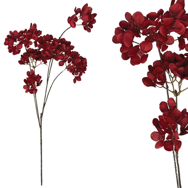 ΚΛΑΔΙ ΔΙΑΚΟΣΜΗΣΗΣ ΟΡΤΑΝΣΙΑ Χ6 - ΧΡΩΜΑ: ΜΠΟΡΝΤΩ - ΥΛΙΚΑ: ΥΦΑΣΜΑ, ΣΥΡΜΑ, ΠΛΑΣΤΙΚΟ - ΚΙΒ.: 12/144 ΔΙΑΣΤΑΣΕΙΣ / DIMΕNSIONS: 34x18x114cm HYDRANGEA DECORATION BRANCH Χ6 - COLOR: BORDEAUX - MATERIALS: FABRIC, WIRE, PLASTIC - BOX: 12/144