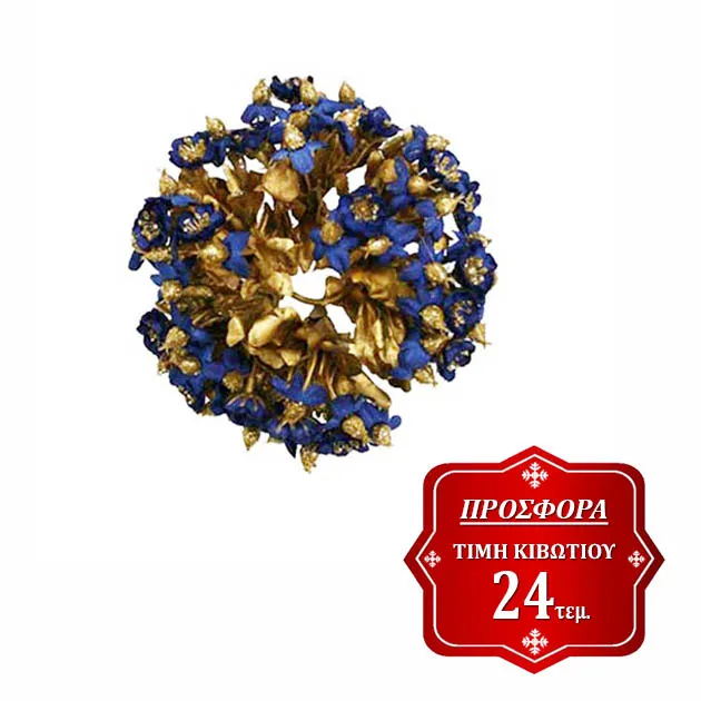 ΣΤΕΦΑΝΑΚΙ ΚΗΡΟΠΗΓΙΟΥ ΜΠΛΕ ΛΟΥΛΟΥΔΙΑ ΕΣ.Φ2cm. ΕΞ.Φ12cm. 24/ΚΤ