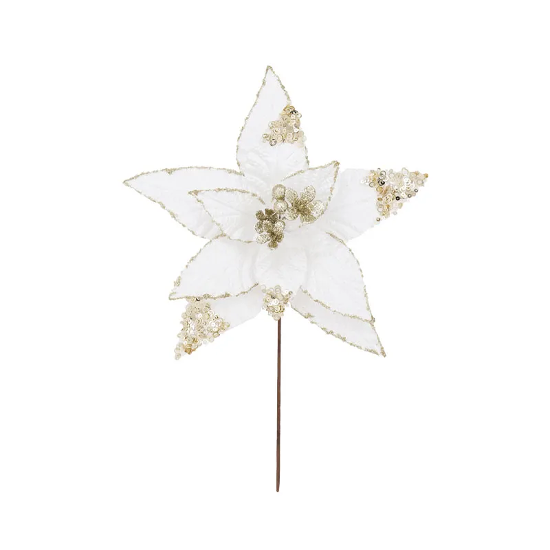 ΧΡΙΣΤΟΥΓΕΝΝΙΑΤΙΚΟ ΠΙΚ ΑΛΕΞΑΝΔΡΙΝΟ ME ΠΑΓΙΕΤΕΣ - ΧΡΩΜΑ: ΛΕΥΚΟ/ΧΡΥΣΟ - ΥΛΙΚΑ: ΥΦΑΣΜΑ, ΠΑΓΙΕΤΕΣ, ΓΚΛΙΤΕΡ, ΣΥΡΜΑ, ΠΛΑΣΤΙΚΟ - ΚΙΒ.: 360 ΔΙΑΣΤΑΣΕΙΣ / DIMΕNSIONS: Φ30cm Y/H30cm XMAS POINSETTIA PIC WITH SEQUINS - COLOR: WHITE/GOLD - MATERIALS: FABRIC, SEQUINS, GLITTER, WIRE, PLASTIC - BOX: 360