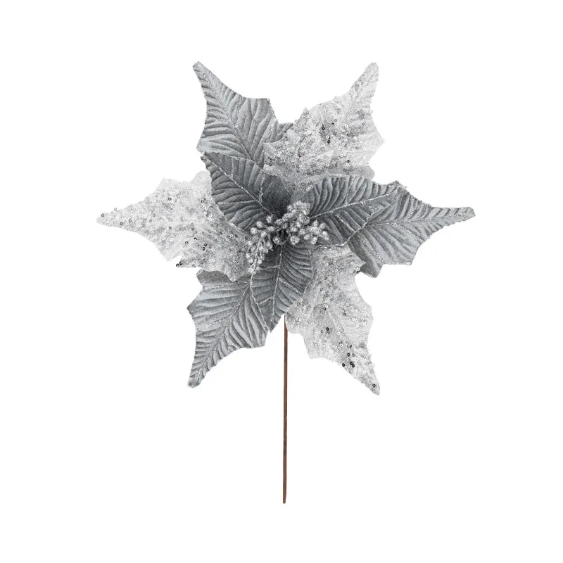 ΧΡΙΣΤΟΥΓΕΝΝΙΑΤΙΚΟ ΠΙΚ ΑΛΕΞΑΝΔΡΙΝΟ ME ΓΚΛΙΤΕΡ - ΧΡΩΜΑ: ΑΣΗΜΙ - ΥΛΙΚΑ: ΥΦΑΣΜΑ, ΓΚΛΙΤΕΡ, ΣΥΡΜΑ, ΠΛΑΣΤΙΚΟ - ΚΙΒ.: 360 ΔΙΑΣΤΑΣΕΙΣ / DIMΕNSIONS: Φ34cm Y/H30cm XMAS POINSETTIA FLOWER PIC WITH GLITTER - COLOR: SILVER - MATERIALS: FABRIC, GLITTER, WIRE, PLASTIC - BOX: 360