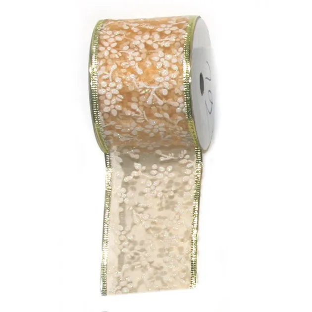 ΚΟΡΔΕΛΑ ΧΡΙΣΤΟΥΓ. ΠΟΡΤΟΚΑΛΙ ΛΕΥΚΑ ΑΝΘΗ 6cm. - ΜΗΚΟΣ 10yd